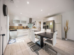 Découvrez cette superbe maison 3 faces située dans le recherché quartier "Las Planas" à Saint-Cyprien, offrant confort, espace et luminosité dans un environnement calme et sans vis-à-vis. Grand salon-séjour de 50 m², baigné de lumière grâce à son orientation idéale Sud. Cuisine américaine moderne et fonctionnelle 4 chambres dont 2 en rez-de-chaussée, parfait pour recevoir ou vivre de plain-pied 2 salles d'eau, dont une au rez-de-chaussée Garage et portail électrique pour plus de praticité Terrasse de 70 m² donnant sur un jardin arboré de 455 m2. Maison de style contemporain en état impeccable, très lumineuse, offrant un cadre de vie agréable et sans vis-à-vis. Idéalement située à proximité des commodités, des plages et des infrastructures de Saint-Cyprien. Un bien rare à découvrir absolument !