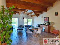 Cette maison individuelle de plain-pied offre un cadre de vie idéal pour les familles dans une environnement paisible Son agencement fonctionnel et ses espaces bien pensés garantissent confort et praticité au quotidien. La maison s'ouvre sur une belle pièce de vie lumineuse avec un espace cuisine ouverte. Trois chambres avec placards composent ce logement, dont une suite parentale avec salle de bain privative avec WC. Les deux autres chambres avec placards sont parfaites pour les enfants. Un bureau vient compléter l'ensemble, idéal pour le télétravail ou les activités nécessitant un espace calme. Un WC indépendant ainsi qu'une salle d'eau supplémentaire viennent renforcer la fonctionnalité de la maison, facilitant la vie quotidienne pour toute la famille. Le double garage attenant est un avantage non négligeable avec une cave. A l'extérieur, le jardin clos et la piscine non chauffée invite à profiter des bons moments en toute tranquillité. Cette maison individuelle de plain-pied allie calme, confort et fonctionnalité avec des prestations adaptées à la vie moderne. Une visite s'impose pour découvrir tout son potentiel. Contacter Sandrine Brisset (EI) au 0668787875 Agent commercial inscrit au RSAC de La Rochelle sous le numéro 899 975 106 . es informations sur les risques auxquels ce bien est exposé sont disponibles sur le site Géorisques : www.georisques.gouv.fr" (3.50 % honoraires TTC à la charge de l'acquéreur.)
