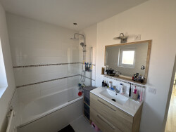 Au premier étage vous y trouverez 3 chambres, ainsi que la salle de bain avec baignoire et un meuble vasque. Au deuxième étage, les combles sont aménagées et proposent un 4ème espace de couchage.
