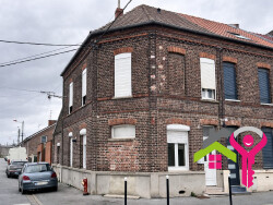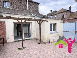 Située proche du collège Turgot à Denain -59220-, je vous propose cette maison de ville semi-mitoyenne avec un jardin et un garage. Au RDC, la maison offre des beaux volumes dans les pièces à vivre, une cuisine spacieuse avec un cellier attenant. A l'étage, le palier distribue 2 chambres et une salle de bains. Il y a un grand grenier au second étage. A l'extérieur, il y a une grande cour carrelée avec un garage. Toutes les fenêtres sont en double vitrage PVC et la maison est également équipée d'un poêle à granules pour un confort et des économies de chauffage.