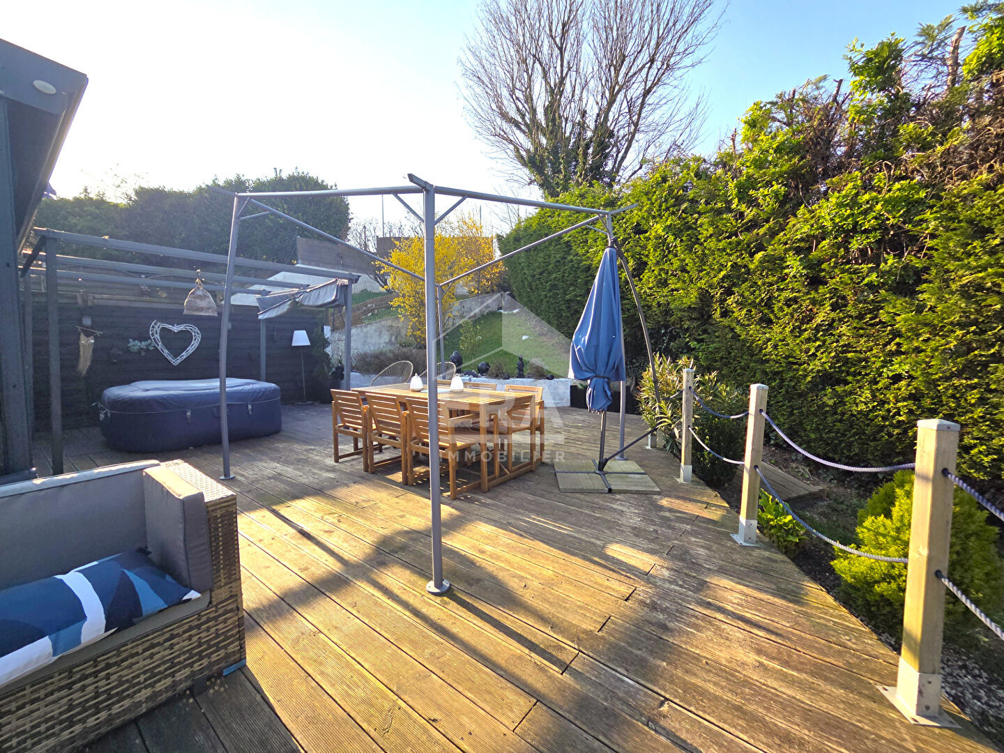 Profitez de deux terrasses pour des dîners en plein air et d'un jardin pour des moments de détente. La maison est bien isolée avec de la laine de verre au plancher, étage et comble, et la toiture en tuile béton avec film plastique et laine de verre garantit une excellente isolation thermique.