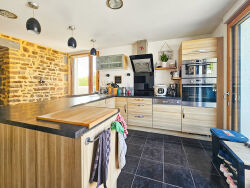REF 16784 - 266 250 euros FAI A VENDRE AU CABINET CHATEAUBRIAND IMMOBILIER Située en plein coeur de Sens-de-Bretagne, à proximité immédiate des commerces et des commodités, venez découvrir cette superbe maison en pierre apportant le cachet de l'ancien et de la modernité ! Cette maison comporte au rez-de-chaussée une très grande cuisine de 17m² aménagée et équipée, un séjour/salon lumineux avec une cheminée à foyer ouvert et un accès direct à la véranda. Vous trouverez également un WC indépendant, des placards, et une salle de bains. A l'étage, un palier dessert trois chambres, un bureau, un débarras et une salle d'eau avec WC. Cette maison bénéficie d'un grand jardin de plus de 1000m², chose assez rare en centre bourg. Enfin, vous pourrez bénéficier d'un grand garage ainsi que d'une dépendance attenante. Caractéristiques techniques: - Toiture en fibrociment - Chauffage électrique - huisseries en bois/métal - Ballon électrique de 300l A VISITER SANS TARDER Logement à consommation énergétique : CLASSE ENERGIE : D (214 Kwh/m²/an) CLASSE CLIMAT : B ( 7 kg CO²/m²/an) Montant estimé des dépenses annuelles d'énergie pour un usage standard:(1880 euros à 2600 euros). Année de référence 01 janvier 2021 Honoraires à la charge du vendeur
