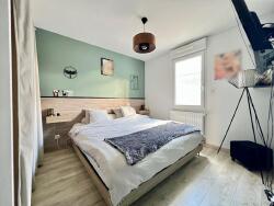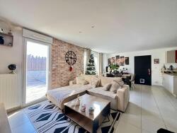De plain pied, elle se compose d'une entrée avec rangement , d'un salon/séjour lumineux exposé sud et d'une cuisine ouverte aménagée et equipée. Côté nuit, le dégagement dessert 2 chambres avec placard/dressing, un wc avec lave-mains et une salle de bain.