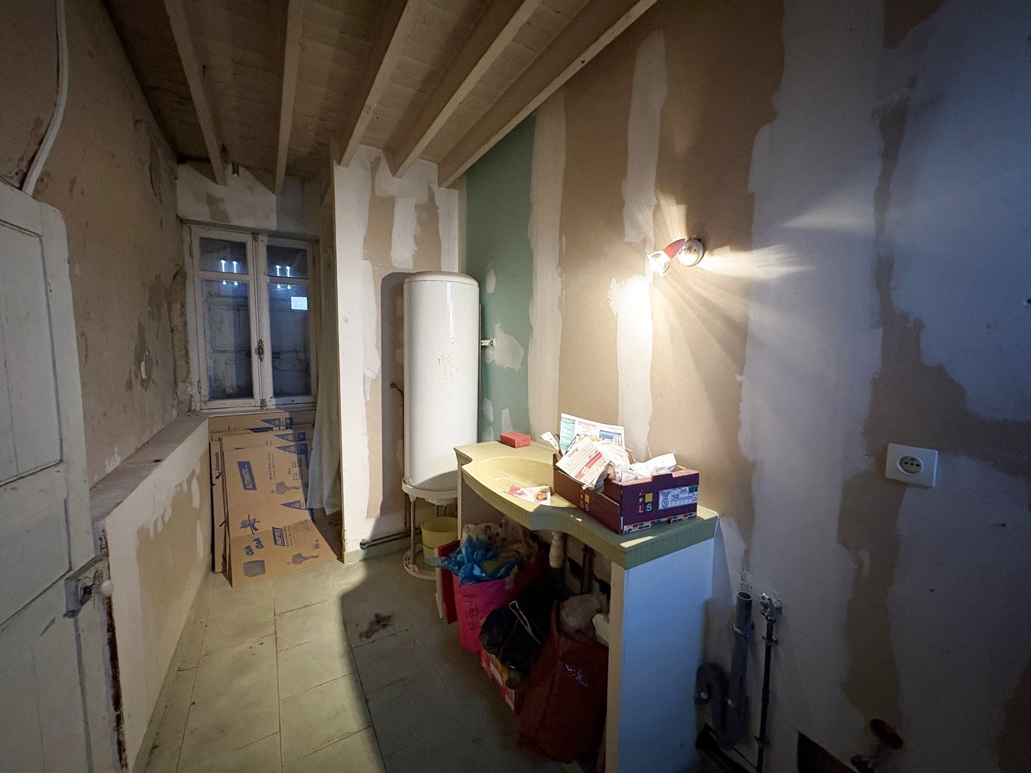 Maison d'environ 50m2 située à Beaucamps le Vieux comprenant : - Au rez-de-chaussée : cuisine, séjour, chambre et salle de douche avec wc. - A l'étage : palier et pièce mansardée.