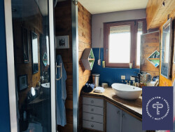 Elle se compose d'une entrée avec sas (véranda), une cuisine équipée et aménagée, une pièce à vivre agrémentée d'un poêle à bois, accès à la terrasse bénéficiant d'une jolie vue. Une chambre, une salle de bain, un wc séparé.