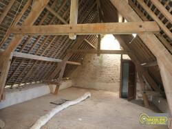 Maison de campagne 3 pièces comprenant: Au rez-de-chaussée : hall d'entrée, cuisine, séjour avec cheminée, deux chambres, salle de bains, WC Combles aménageables Au rez-de-jardin : garage (25 m²), atelier et cave (27 m²) Dépendance en pierre (76m² env.) Ancienne boulangerie et petite dépendance Cour et terrain, le tout sur 4 776 m²