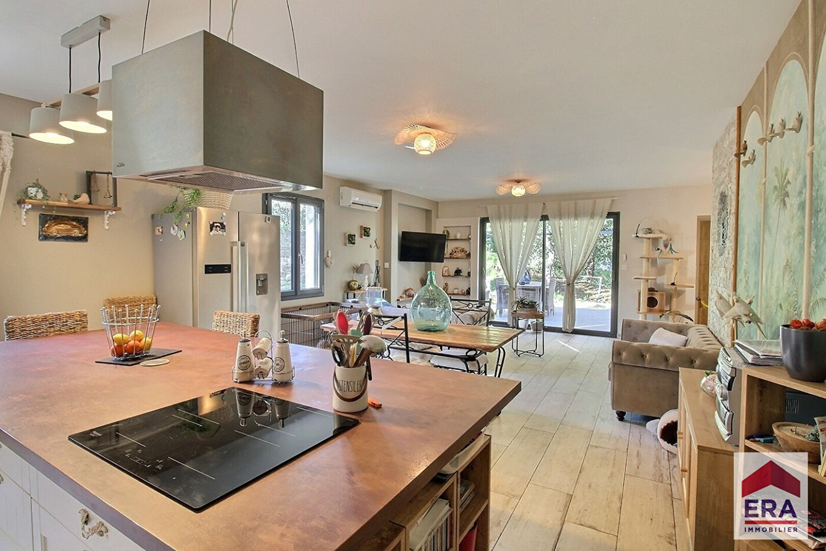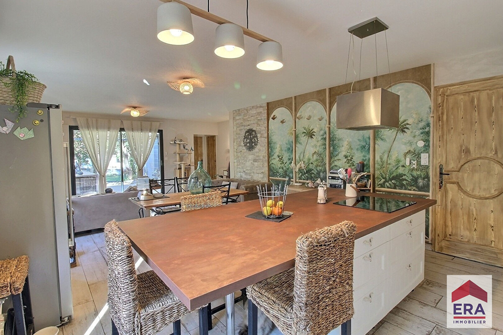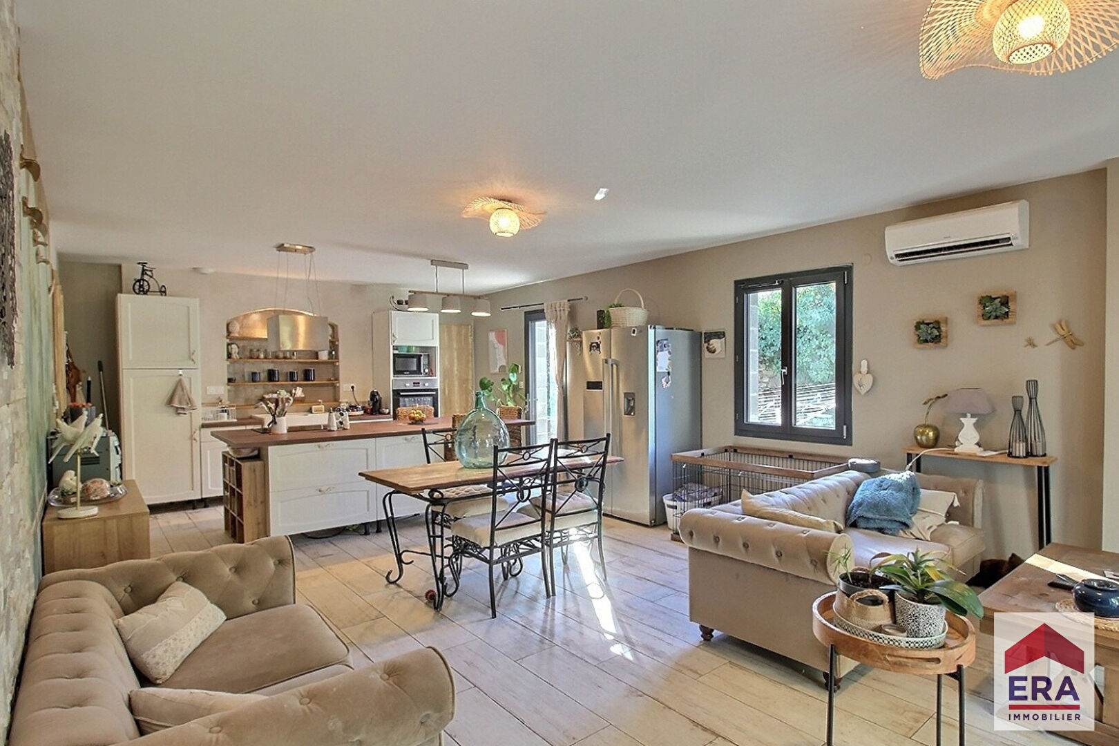 Une entrée nous invite à découvrir une pièce de vie spacieuse avec sa cuisine ouverte pour une surface totale de près de 55m2.