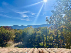 Les deux portes fenêtres exposées plein sud permettent d'inonder généreusement de lumière cet espace. A l'opposé, une porte fenêtre permet l' accès à l'arrière de la maison et surtout à une superbe vue sur un champs de lavande. Sur ce même niveau une suite parentale, équipée d'une salle d'eau et son wc. . L'escalier permet d'accéder à l'étage qui comprend deux chambres avec vue imprenable sur le Luberon et la campagne environnante .