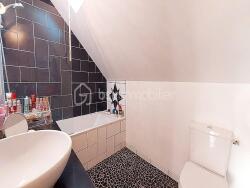 Actuellement, seul l'étage a été rénové, disposant de 3 chambres et une salle de bain avec wc.