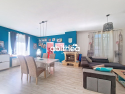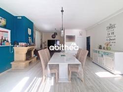 d'un séjour lumineux de 38m2 avec cheminée, d'une cuisine séparée et aménagée, d'une salle de bain cosy, de deux chambres de 16m2 et 17m2, d'un espace buanderie, cellier, d'un wc indépendant.