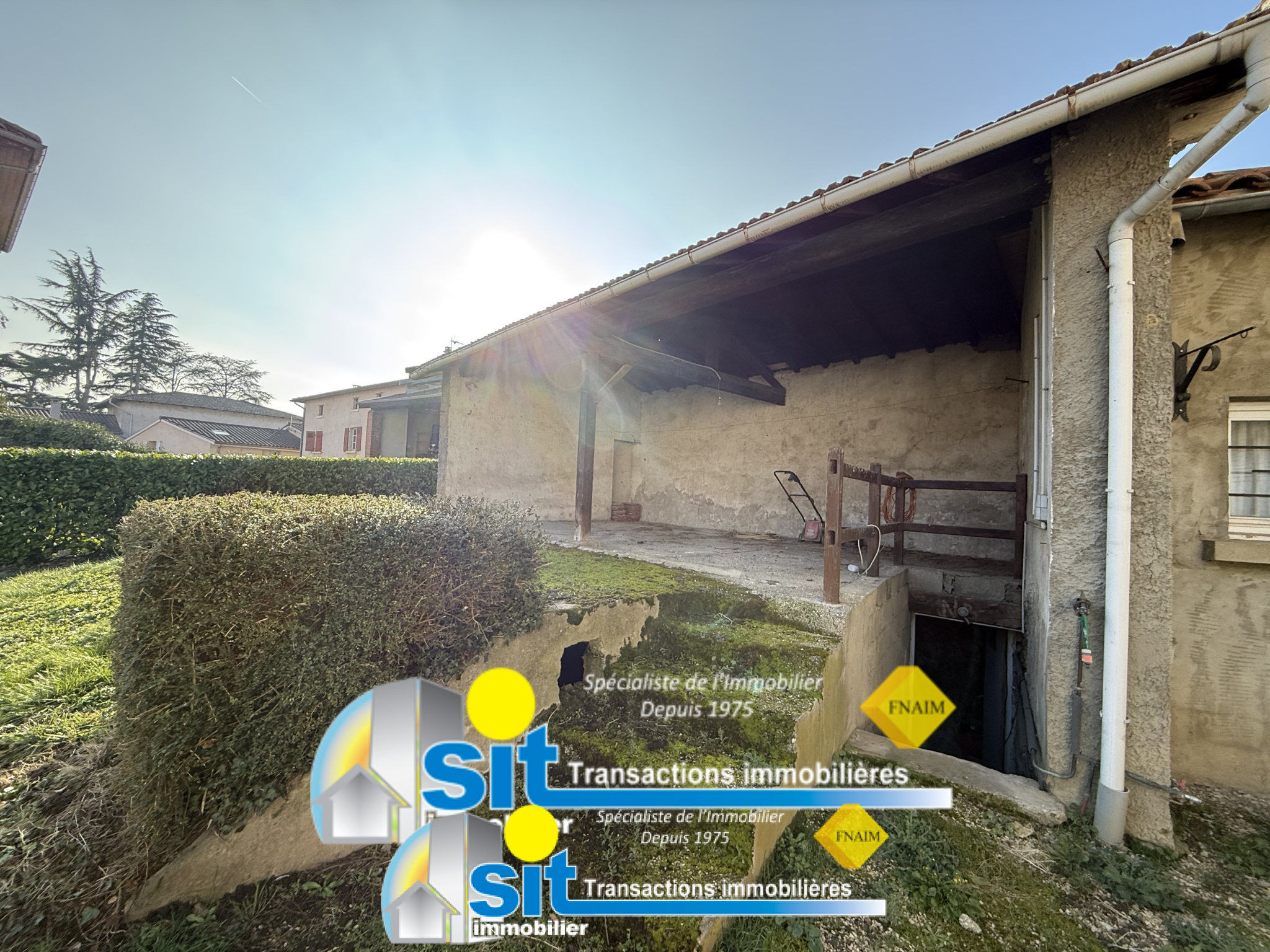 AM2783 À 15 min au sud de VIENNE (38200) Commune de CHONAS-L'AMBALLAN (38121) SIT IMMOBILIER vous propose à la vente cette maison avec sous-sol complet, idéalement située au calme, sur les hauteurs de Chonas-l'Amballan. Ce bien comprend DEUX LOGEMENTS indépendants, idéal pour deux familles ou pour un investissement locatif. Maison principale : d'environ 101 m2 habitables, elle dispose d'une cuisine équipée, d'un séjour avec cheminée et accès balcon, de trois chambres, d'une salle de bains et de WC séparés. Appartement T2 au rez-de-chaussée : d'environ 46 m2, il comprend une cuisine ouverte sur terrasse, un séjour, une chambre, une salle de bains et des WC (compteurs d'eau et d'électricité indépendants). Des travaux de rafraîchissement sont à prévoir pour mettre ce bien au goût du jour. Le tout est complété par un grand garage de 90 m2, une cave, et un terrain plat de 4 670 m2 (non constructible) en bordure de champ. La maison est raccordée à l'égout et équipée d'un système de récupération des eaux pluviales. À proximité : à seulement 10 min de la gare SNCF et des commerces, avec ramassage scolaire accessible à pied. Prix affiché honoraires d'agence inclus, à la charge du vendeur. Pour plus d'informations sur les risques liés à ce bien, consultez le site Géorisques : www.georisques.gouv.fr.