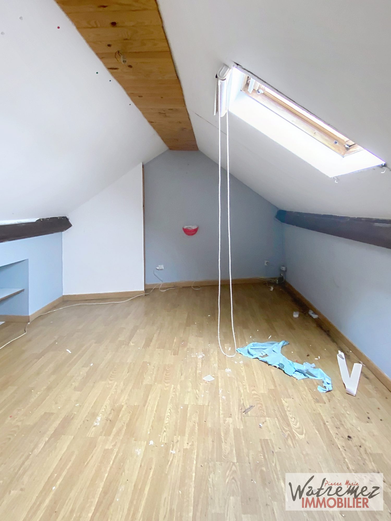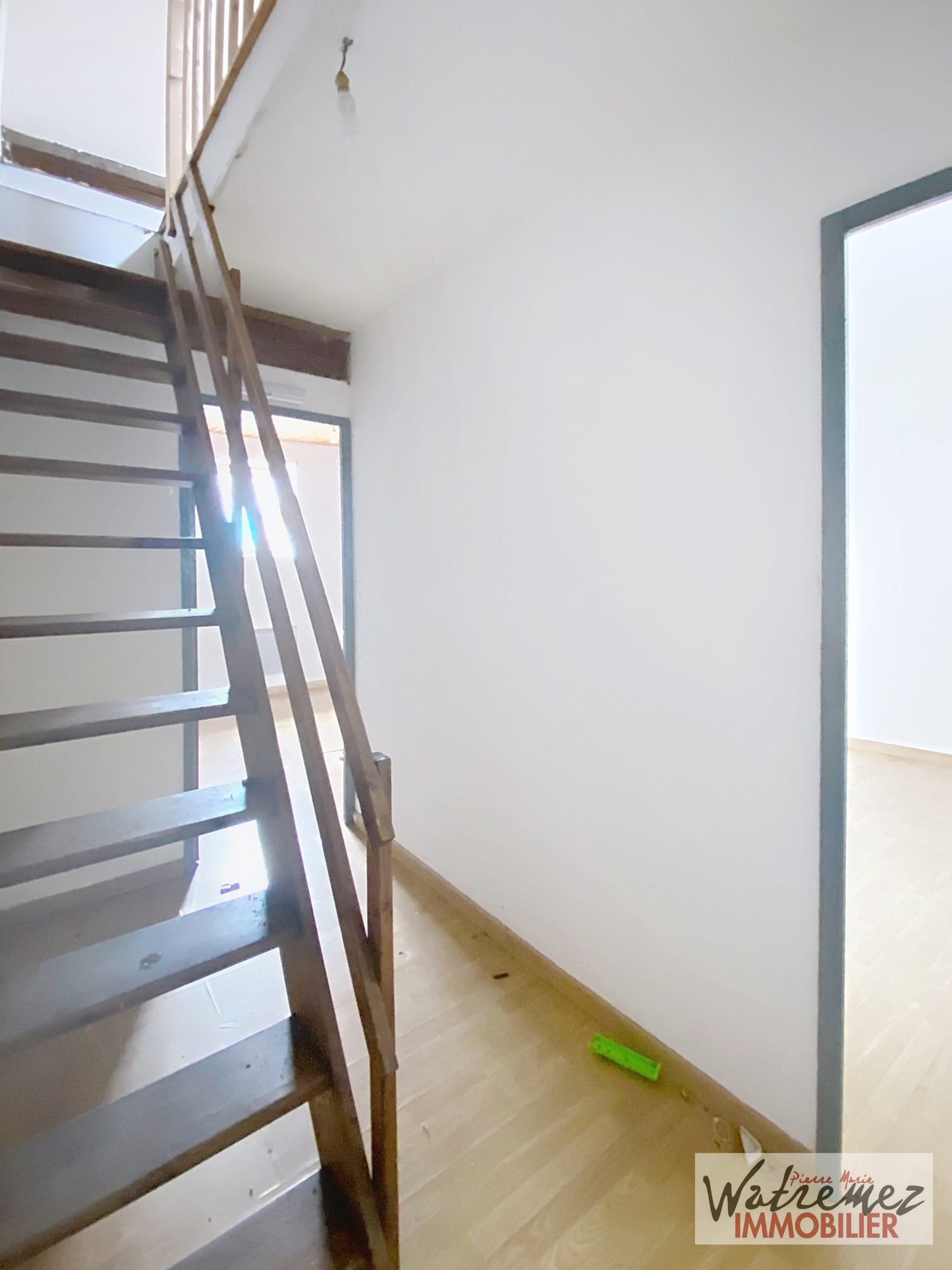 Après avoir gravi les marches de l'escalier en bois, vous trouverez un large palier, une salle de bain (avec baignoire et douche intégrée, meuble vasque 2 portes et emplacement pour la machine à laver), ainsi qu'une chambre de 10.36 m² avec placard intégré.