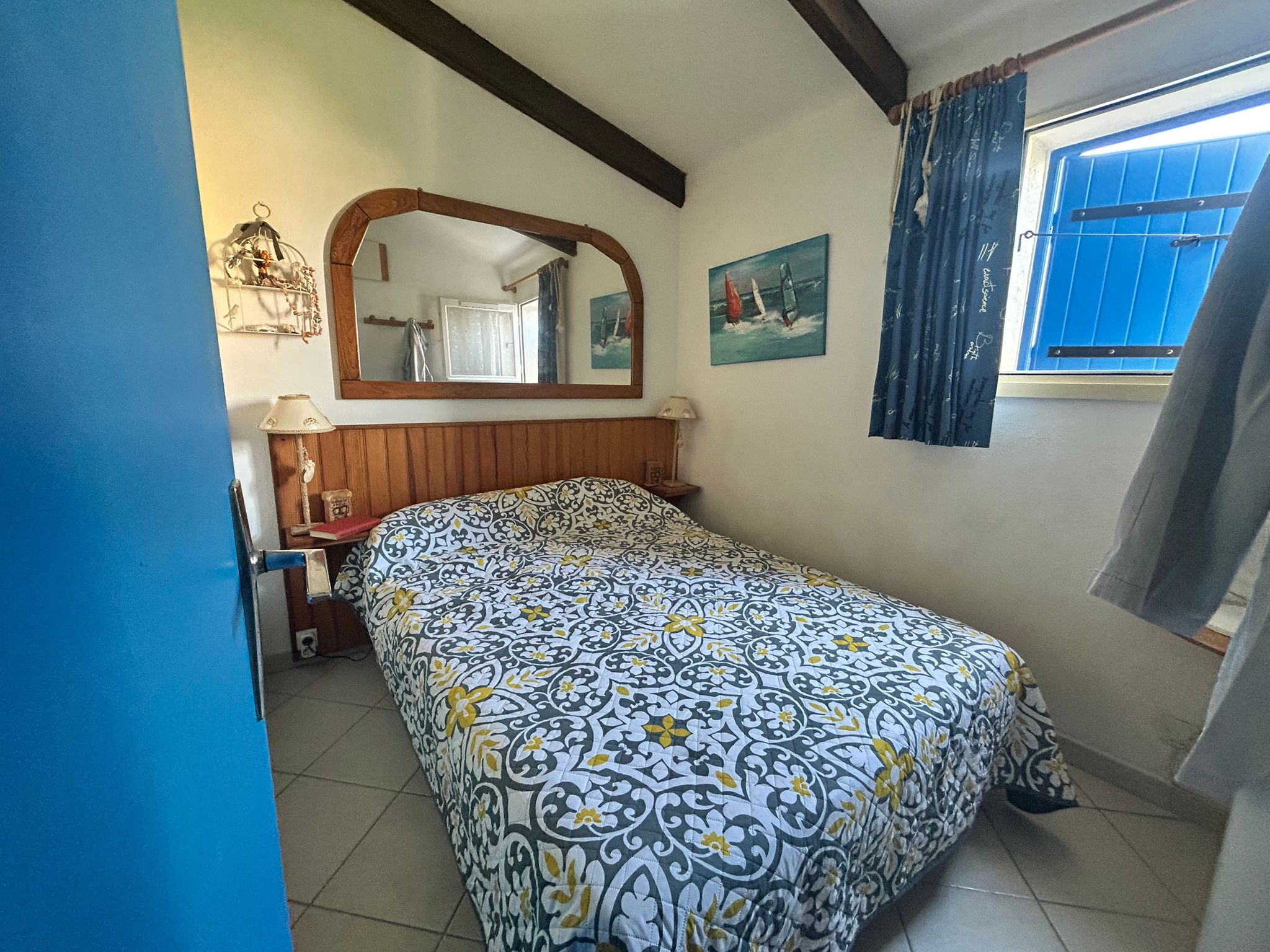 À l'étage, une mezzanine aménagée offre un espace de couchage supplémentaire.