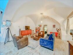 - un vaste séjour voûté de 93m² avec salle à manger, cuisine ouverte, espace bureau/coin nuit et arrière-cuisine,