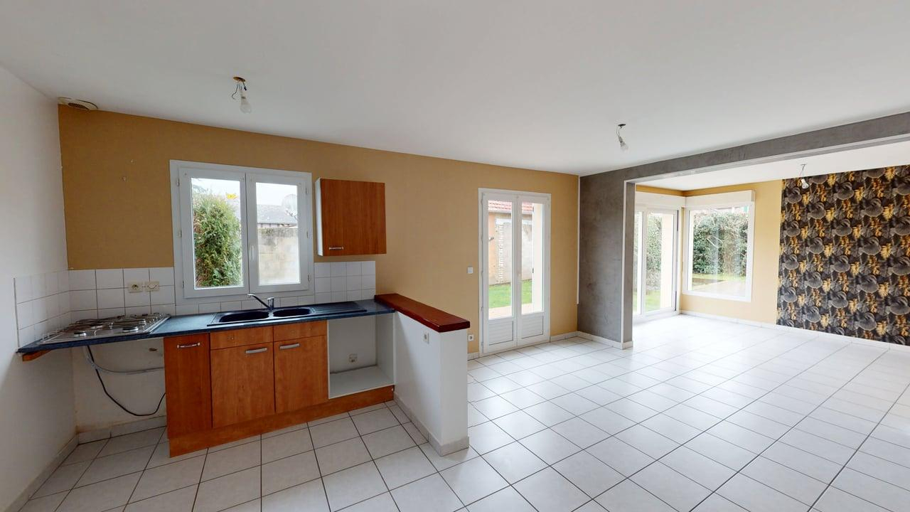 VERNON - Maison mitoyenne de type T3/4 avec sous-sol total comprenant, entrée, salon, séjour, cuisine indépendante aménagée et semi équipée (hotte et plaque de cuisson), deux petites chambres dont une avec placard, salle d'eau, WC indépendant. Possibilité d'une 3ème chambre. Jardin. Garage.