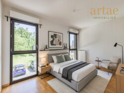 Au rez-de-chaussée, elle se compose d'une pièce de vie lumineuse avec cuisine ouverte donnant accès à une terrasse et à un jardin d'environ 40 m² exposé sud-est, d'une première chambre ainsi que d'une salle de bain avec WC. À l'étage, le coin nuit comprend une seconde chambre, une salle de bain avec WC ainsi qu'une belle terrasse de 10 m², idéale pour profiter des beaux jours.