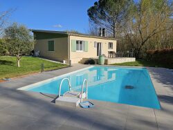 Et que dire de la piscine ? Un bassin généreux qui vous promet des heures de plaisir et de détente, que ce soit pour une baignade matinale ou une soirée entre amis. Entourée d'un espace vert soigné, elle transforme votre jardin en un véritable havre de paix, un lieu où le temps semble s'arrêter.