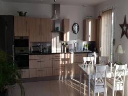 - Cuisine aménagée avec plaques vitro 4 feux, four, hotte, évier, lave-vaisselle