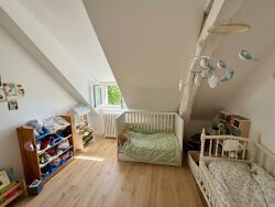 Rénovée en 2022, elle se compose au rez-de-chaussée d'une pièce de vie lumineuse ouverte sur la cuisine de plus de 30m², une pièce qui offre de multiples possibilités (pièce télé, bureau, chambre), d'une salle d'eau, d'une buanderie et d'un W.C. A l'étage, le pallier vous dessert les trois chambres dont de plus de 15m², une salle de jeu et une salle de bains avec W.C.