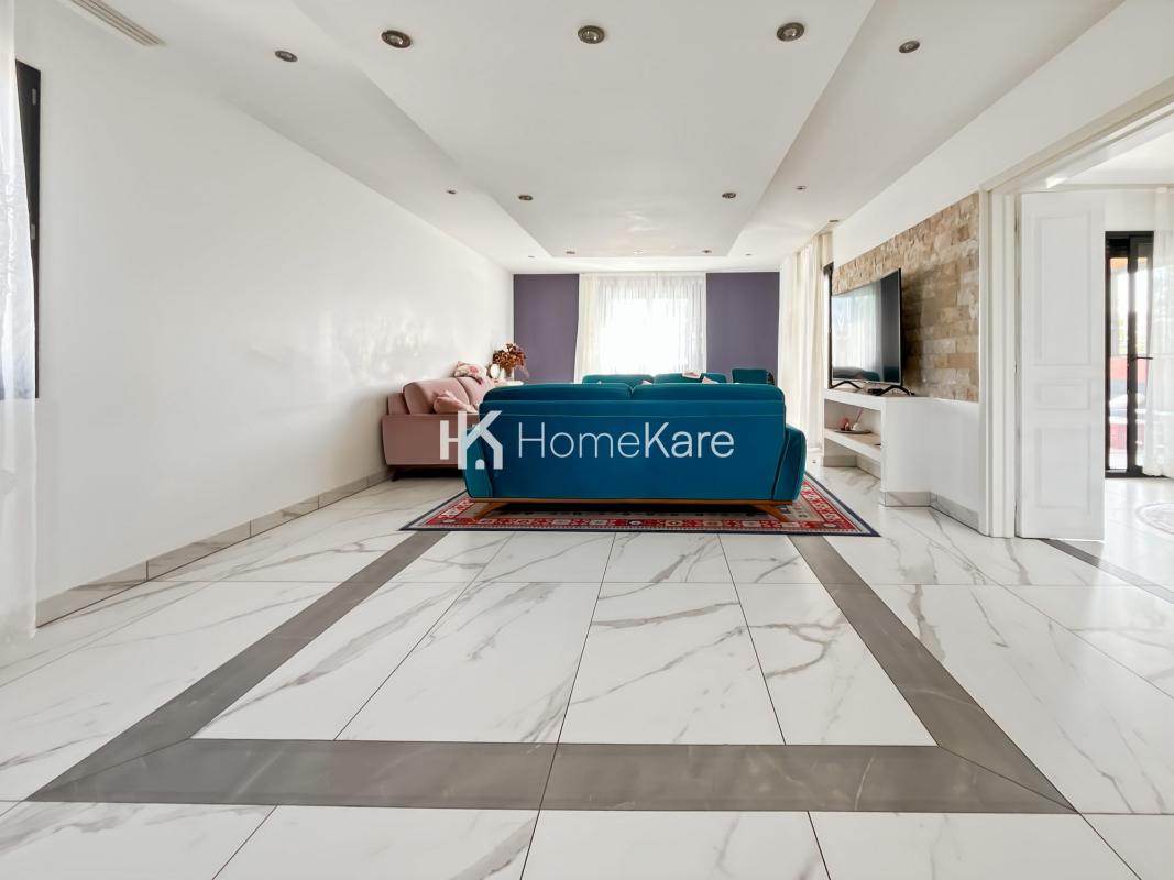 À l'extérieur, profitez de deux terrasses : l'une exposée plein sud avec vue dégagée et store banne, l'autre ombragée surplombant la piscine et un jardin intime, sans vis-à-vis.