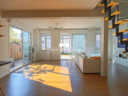 Au rez-de-chaussée, l'entrée s'ouvre sur un agréable espace de vie comprenant un séjour lumineux grâce à de larges baies vitrées donnant accès à deux terrasses exposées sud-ouest. La cuisine, entièrement équipée et ouverte sur le séjour, crée une atmosphère conviviale. On trouve également un premier toilette indépendant à ce niveau.