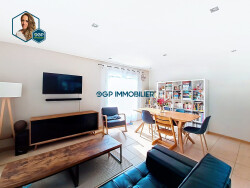 COMPOSITION: - Pièce de vie lumineuse traversante de 47m² - Cuisine moderne entièrement équipée - 2 chambres avec placards où chacune un accès à la salle d'eau - 1 chambre parentale avec salle d'eau privative