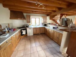 Maison T4 de 120m² comprenant au rez-de-chaussée: une cuisine aménagée et équipée (réfrigérateur, four, plaque de cuisson, hotte et lave-vaisselle) ouverte sur le séjour, un WC, à l'étage: 3 chambres et une mezzanine, une salle d'eau cave+ terrain non clos Chauffage fioul Située 12, rue du Garet 42560 GUMIERES- Hameau Prolanges