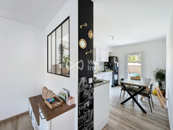 Construite en 1984, cette maison a été intégralement rénovée il y a deux ans avec goût. Elle se compose au rez-de-chaussée d'une belle pièce de vie traversante (d'est en ouest), d'une cuisine attenante entièrement équipée, d'une suite parentale, d'une seconde chambre avec WC et d'une buanderie attenante (anciennement le garage).