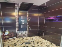 Le confort est assuré par une pompe à chaleur, avec chauffage au sol au rez-de-chaussée et radiateurs soufflants à l'étage.