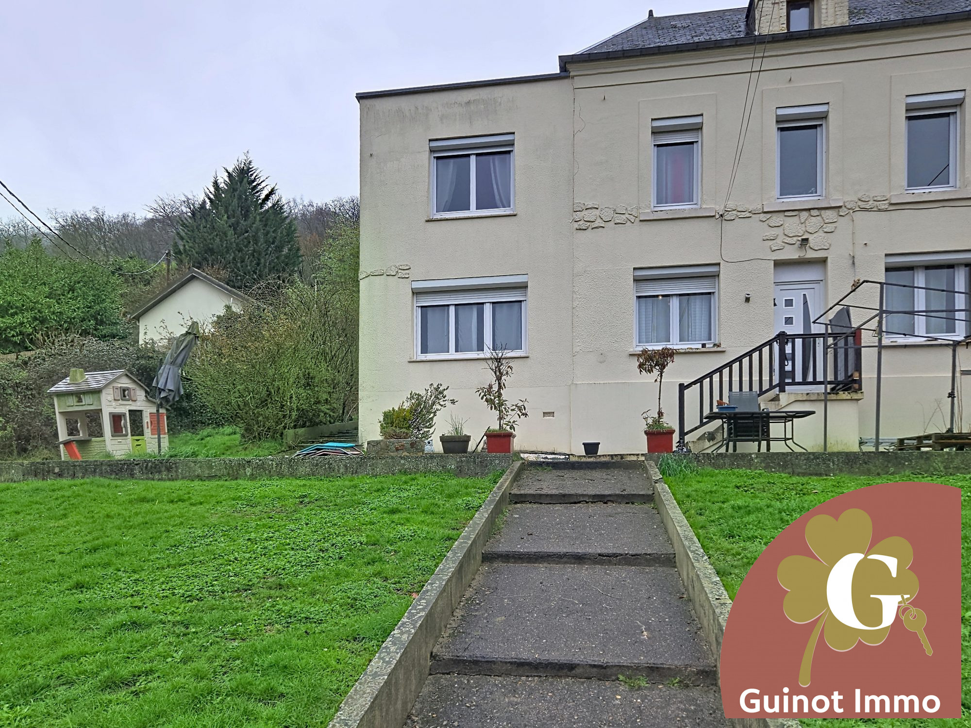 Au rez-de-jardin, une 4 ème chambre, un garage, une buanderie et rangements.