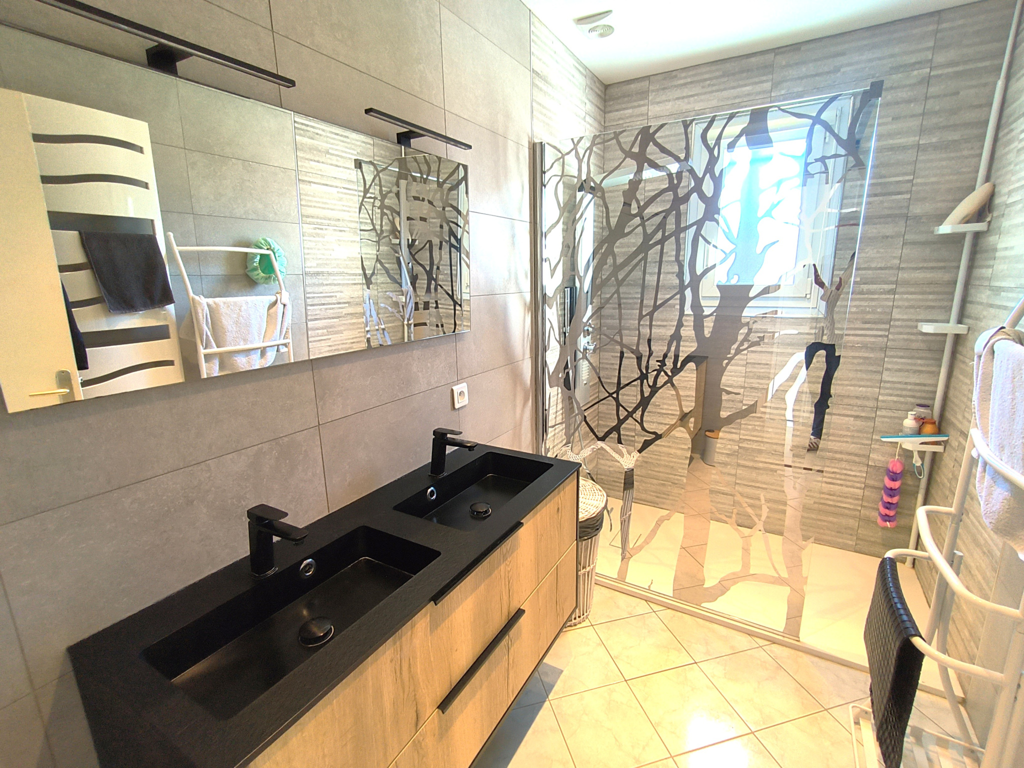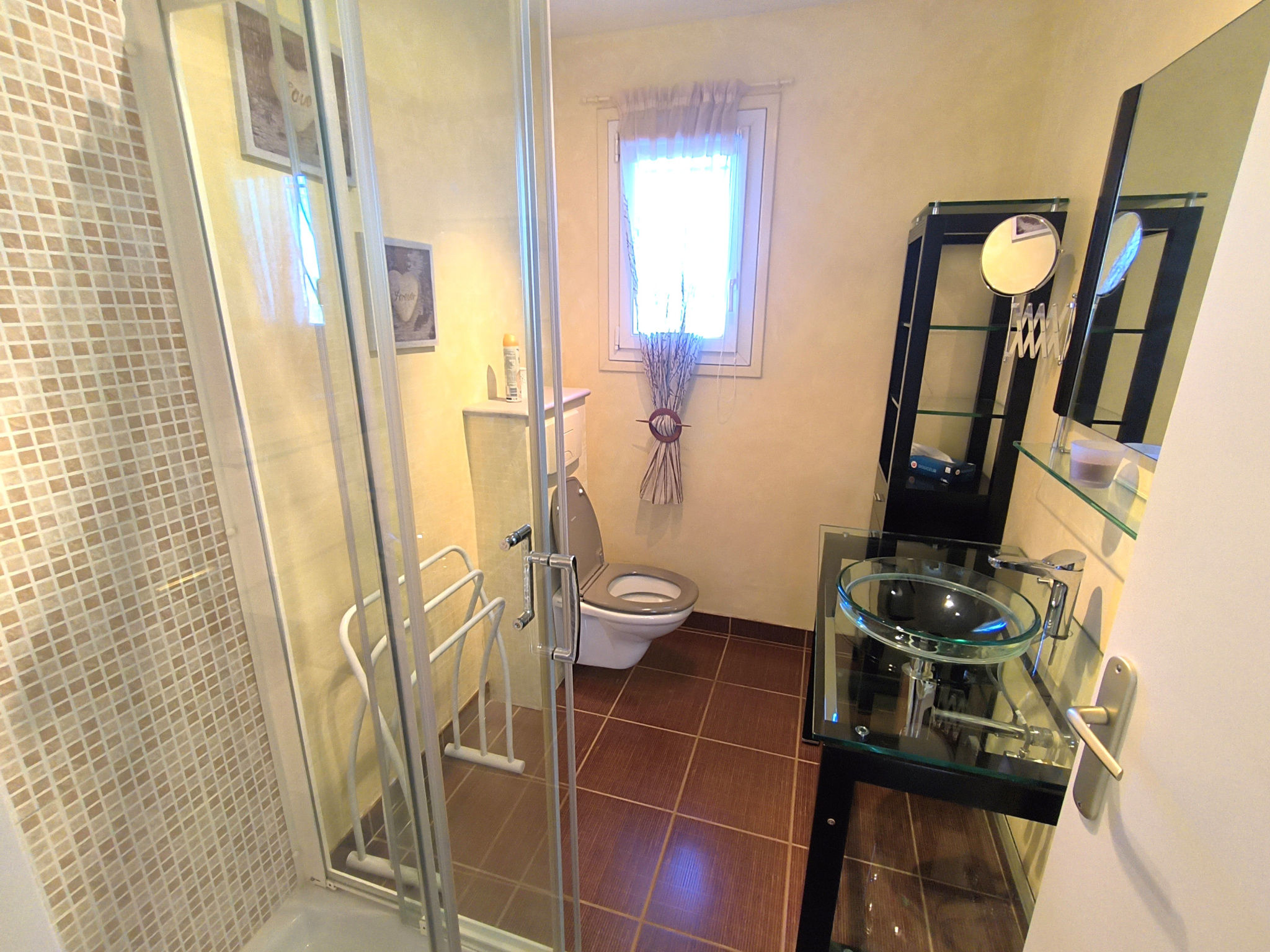 Côté prestations, la maison bénéficie d'équipements récents et qualitatifs : menuiseries double vitrage aluminium, volets roulants solaires, moustiquaires, isolation des combles, tableau électrique refait, VMC double flux, climatisations réversibles, alarme, fibre optique