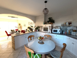 Découvrez cette belle maison familiale de type 5 d'environ 160 m2, très bien entretenue et idéale pour une vie de famille, située en centre-ville d'Auterive dans un quartier résidentiel calme et sans vis-à-vis, à proximité immédiate de toutes les commodités. Elle offre une entrée avec placards, un vaste salon/salle à manger lumineux de plus de 50 m2 avec cheminée insert, exposé Sud ouvrant sur une grande terrasse couverte, ainsi qu'une cuisine spacieuse et entièrement équipée, semi-ouverte, avec accès à une seconde terrasse (Nord). Une arrière-cuisine de 19 m2 faisant office de cellier et buanderie complète le rez-de-chaussée. L'espace nuit propose deux chambres avec rangements, une grande salle de bain avec baignoire et douche et un toilette indépendant. À l'étage, les combles aménagés accueillent une suite parentale avec salle d'eau, des rangements et une pièce supplémentaire pouvant servir de bureau ou de couchage. Une cave isolée est également présente en sous-sol. Les extérieurs, agréablement paysagés, disposent d'une piscine rénovée avec pierres de Bali, d'un abri voiture et d'un cabanon de jardin. De nombreux travaux récents ont été réalisés : pompe à chaleur, panneaux solaires pour l'eau chaude, volets roulants électriques dans les chambres, cuisine et salle de bain, portail électrique, brise-vues, piscine remise à neuf et toiture entretenue. Aucun travaux à prévoir. L'emplacement permet un accès rapide aux commerces, écoles, collège, lycées, gare et axes routiers, au coeur d'une ville dynamique en plein développement économique. Un bien rare sur le secteur, à visiter sans tarder. DPE : C (chauffage par le sol et cheminée) - consommation anuelle comprise entre 1170 EUR et 1650 EUR selon tarifs 2021, 2022, 2023. Honoraires à charge des vendeurs. Les informations sur les risques auxquels ce bien est exposé sont disponibles sur le site Géorisques: www.georisques.gouv.fr. Réf. KBIMMO31 no 1099. La présente annonce immobilière a été rédigée sous la responsabilité éditoriale de Mme AIROLA-SAMAIN, Présidente de la SAS ART'IMMO31 immatriculée au RCS de Toulouse no1087 468 220 sans détention de fonds- CPI 31 01 2024 000 000 006.