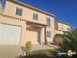 Proximité plages, autoroute et commerces, cette jolie maison de ville T5, traversante et très lumineuse, libre sur deux faces, R+1, de 125m2 de surface habitables, elle se compose en rez de chaussée d'une entrée, wc lave-main, cuisine indépendante équipée, grand salon de 35m2. A l'étage, un dégagement dessert 4 chambres avec placard dont une suite parentale avec salle d'eau/wc, une salle d'eau supplémentaire. Les menuiseries sont en double vitrage PVC, le chauffage est électrique le tout sur 271m2 de terrain avec bbq et grand garage de 28m2.La maison est en excellent état. Pour visiter, contacter Marie Lise CLAVIERES au 06 13 08 63 48 ou vente.clavieres@agencedusoleil.com