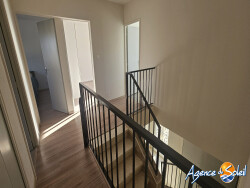 Proximité plages, autoroute et commerces, cette jolie maison de ville T5, traversante et très lumineuse, libre sur deux faces, R+1, de 125m2 de surface habitables, elle se compose en rez de chaussée d'une entrée, wc lave-main, cuisine indépendante équipée, grand salon de 35m2. A l'étage, un dégagement dessert 4 chambres avec placard dont une suite parentale avec salle d'eau/wc, une salle d'eau supplémentaire. Les menuiseries sont en double vitrage PVC, le chauffage est électrique le tout sur 271m2 de terrain avec bbq et grand garage de 28m2.La maison est en excellent état. Pour visiter, contacter Marie Lise CLAVIERES au 06 13 08 63 48 ou vente.clavieres@agencedusoleil.com