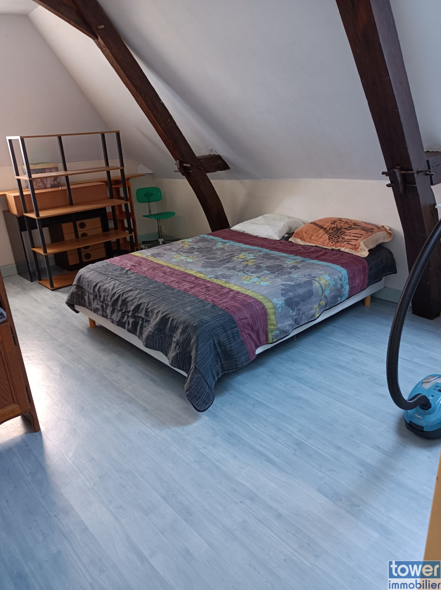 A l'étage : une mezzanine, une chambre, une salle de bains avec WC, grenier.