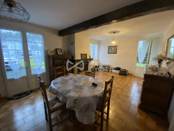 A moins de 1.5 km de la très belle plage d'Ondres, sur une parcelle de 1799 m², cette maison des années 60 de 137 m² avec 56 m² de dépendances peut être envisagée comme une résidence principale ou secondaire. Le rez-de-chaussée est composé d'une cuisine aménagée indépendante qui donne coté nord sur un grand salon avec cheminée à foyer fermé de plus de 27 m² et coté sud sur un bel espace séjour/ salle à manger de 30 m² ouvert sur le jardin et la foret en arrière plan. Une chambre, un WC indépendant, une salle de bain, une salle d'eau et un cellier avec un accès au double garage complète ce niveau. A l'étage, deux grandes chambres et un WC indépendant. la maison est équipée de menuiseries double vitrage, le chauffage central et la production d'eau chaude sont au gaz de ville. La maison est raccordée au tout à l'égout. Des travaux de mise aux normes de l'électricité et du chauffage seront nécessaires (chaudière ancienne), cuisine et salle de bain ainsi qu'une remise aux goût du jour de l'ensemble de la maison. Le jardin est piscinable et une division parcellaire peut être envisagée sous réserve des autorisation de la mairie. Un abri de jardin et un chalet bois offre beaucoup de rangements. La partie arrière du terrain est joliment arboré et sans vis à vis.