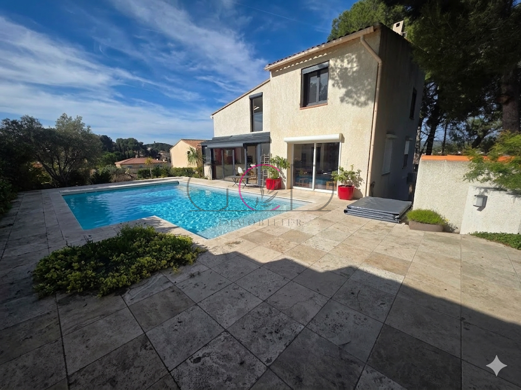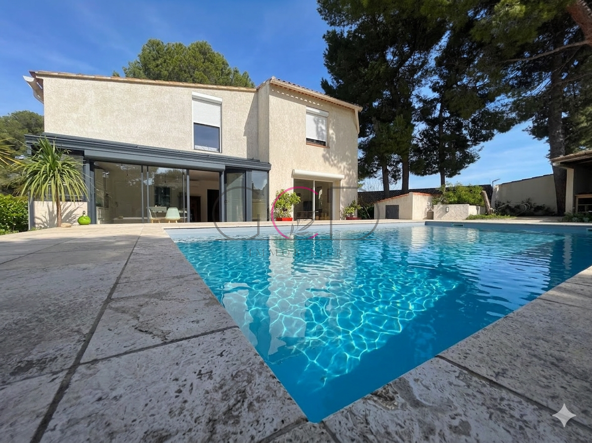 Située à proximité immédiate des écoles et des commerces, au sein d'un lotissement recherché et au calme absolu, venez découvrir cette maison entièrement rénovée, aux prestations modernes et soignées. Implantée sur une parcelle de 487 m², cette maison développe environ 120 m² habitables et offre un cadre de vie exceptionnel, sans aucun vis-à-vis, avec une vue dégagée. A l'entrée, un espace fonctionnel avec rangements. La pièce de vie lumineuse, exposée sud à sud-ouest, accueille un séjour convivial ouvert sur une cuisine entièrement aménagée et équipée, agrémentée d'un élégant îlot central. L'ensemble s'ouvre directement sur une belle terrasse, la piscine et un panorama dégagé. La maison se compose de 4 chambres, dont une suite parentale, d'une buanderie, ainsi que d'une salle de bain supplémentaire. Deux WC complètent l'ensemble. A l'extérieur, vous profiterez d'un environnement privilégié avec une terrasse offrant une vue panoramique et un espace piscine. Prestations de qualité : -Climatisation réversible gainable - Rénovation complète intérieure et extérieure -Aucun travaux à prévoir -DPE : B / GES : A Une maison clé en main, idéale pour une famille à la recherche de confort, de calme et de modernité. Prix : 640 000 euros Frais d'agence inclus, honoraires à la charge du vendeur. RCS Aix 814 576 997 00021 AIXTY Immobilier est l'agence N°1 sur le Pays Aixois et Velaux depuis 2019 en terme de reconnaissance client et de vente réalisées, n'hésitez pas à nous contacter pour votre projet ou pour l'expertise de votre bien immobilier.