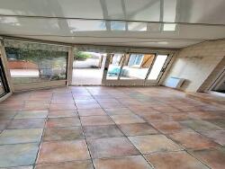 La pièce de vie spacieuse et chaleureuse avec sa cheminée s'ouvre sur une véranda offrant un espace supplémentaire lumineux pour profiter de l'extérieur tout en étant à l'abri. .