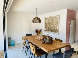 En EXCLUSIVITE, sur la commune de Capbreton, à proximité immédiate des commerces, boulangerie et supermarché, maison lumineuse des années 60 en R+1 d'environ 130 m2 entièrement cloturée et rénovée, proposant des prestations de qualité. L'espace de vie se trouve en RDC et l'étage accueille l'espace nuit avec 4 Chambres avec 4 SDE ainsi que 2 balcons. La parcelle avoisine les 1200m2 La propriété peut être vendue entièrement meublée. Une annexe s'ajoute au bien, avec un T1 de plain-pied de plus de 22m2 d'un coté et de l'autre, un garage de plus de 16m2