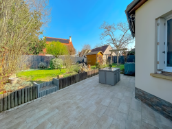Maison T6 de plain-pied d'environ 141,58 m2 habitables située à Changé, dans un quartier pavillonnaire résidentiel calme avec de faibles nuisances sonores, offrant un cadre de vie agréable et familial. Les commerces, boulangerie, transports et écoles sont accessibles en quelques minutes à pied, et le centre-ville du Mans est rapidement accessible. La maison, construite en 1995, comprend également une extension plus récente avec une entrée indépendante, idéale pour une profession libérale, une famille avec un espace pour un adolescent, une maison familiale avec une partie indépendante ou encore un projet locatif permettant de générer un revenu complémentaire. La partie principale se compose d'une entrée avec placard, d'une cuisine aménagée et équipée semi-ouverte sur un salon séjour lumineux grâce à une grande baie vitrée donnant sur une grande terrasse carrelée et un jardin végétalisé. Vous trouverez également une salle d'eau avec baignoire, douche et double vasque, un WC séparé ainsi que trois belles chambres. Un grand garage complète le bien avec une chambre d'été aménagée au-dessus, non comptabilisée dans la surface habitable. La partie extension, plus récente, dispose de son entrée indépendante, d'une salle d'eau avec douche, WC, meuble vasque et miroir, d'un salon donnant sur le jardin et à l'étage d'une chambre. La maison dispose du double vitrage, d'une chaudière gaz, d'un DPE classé C. Les matériaux et la décoration sont de qualité, avec un style mêlant moderne et provençal. Ce bien offre un très bon rapport qualité prix et conviendra aussi bien à une famille qu'à un projet professionnel ou locatif.