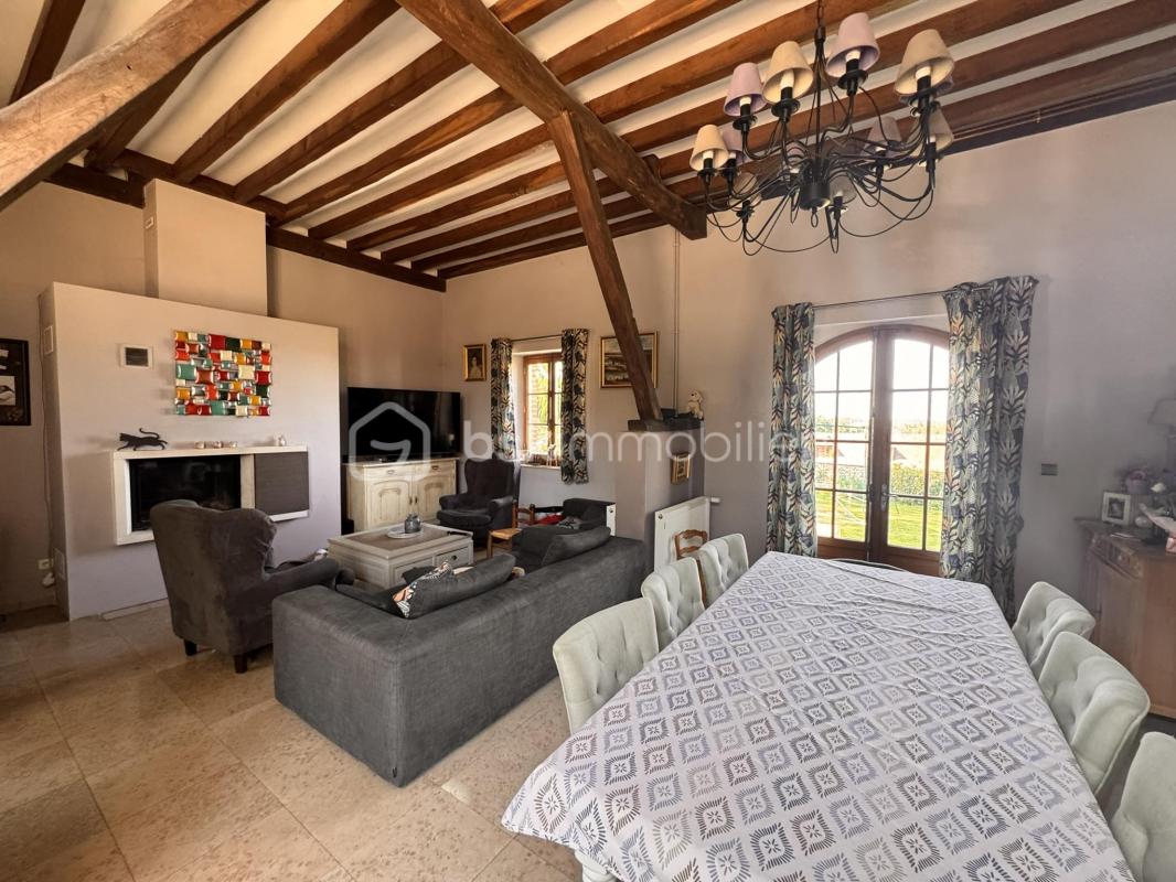 Entrez dans un vaste séjour double de 44 m2 avec un insert à bois grand foyer , idéal pour des soirées chaleureuses.