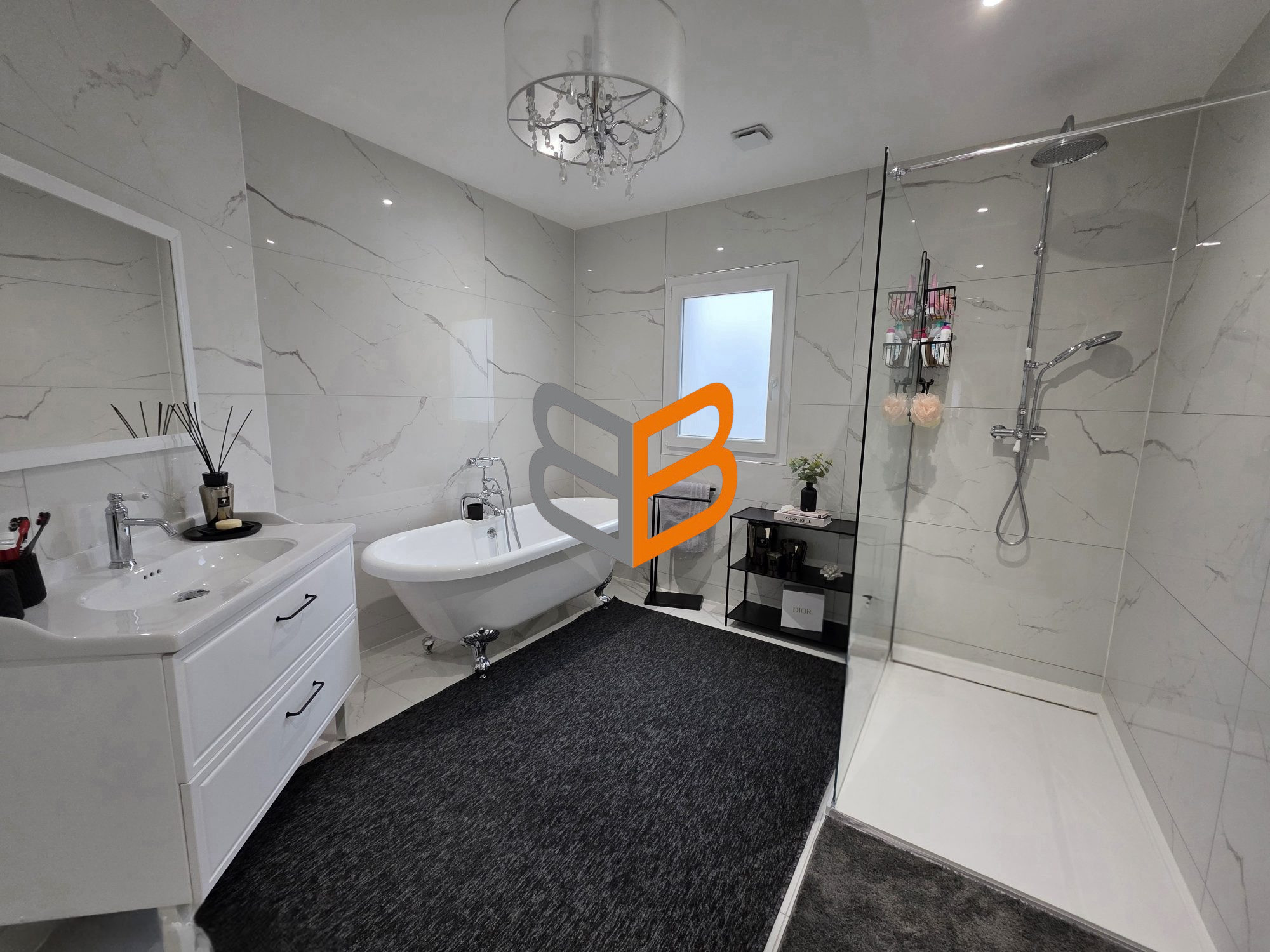 Rez-de-chaussée : -Une entrée spacieuse. -Une Buanderie pratique. -Un grand garage de 63m² pour les passionnés de voitures ou les bricoleurs.