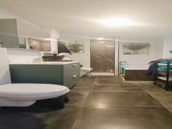 Composé en Rdc, d'un couloir d'entrée donnant sur une magnifique salle à manger ouverte sur cuisine 'full équipée' ainsi qu'un ravissant séjour, l'ensemble sur près de 42m². En continuité, une 'première' salle de bain tout confort (WC, vasque, douche et baignoire) puis une annexe buanderie de 5m²