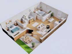 Cette Maison T3 est livrée équipée : peintures, salle de bains, sols, cuisine équipée meubles+électroménager. Seuls frais à rajouter : frais de notaire (environ 2,5%). Elle comprend : - Séjour traversant 33,35m2, terrasse 7m2, entrée avec placard - Deux chambres 11,8-10,65m2 - Salle d'eau douche à l'italienne meuble vasque sèche serviette, wc séparé, coin buanderie Parking