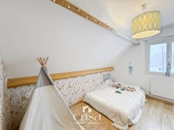 -Au rdc : entrée, séjour/salon de 35 m2 avec insert granulés, chambre avec salle d'eau. -A l'étage : palier desservant 3 chambres, dressing et salle de bains avec douche, wc.