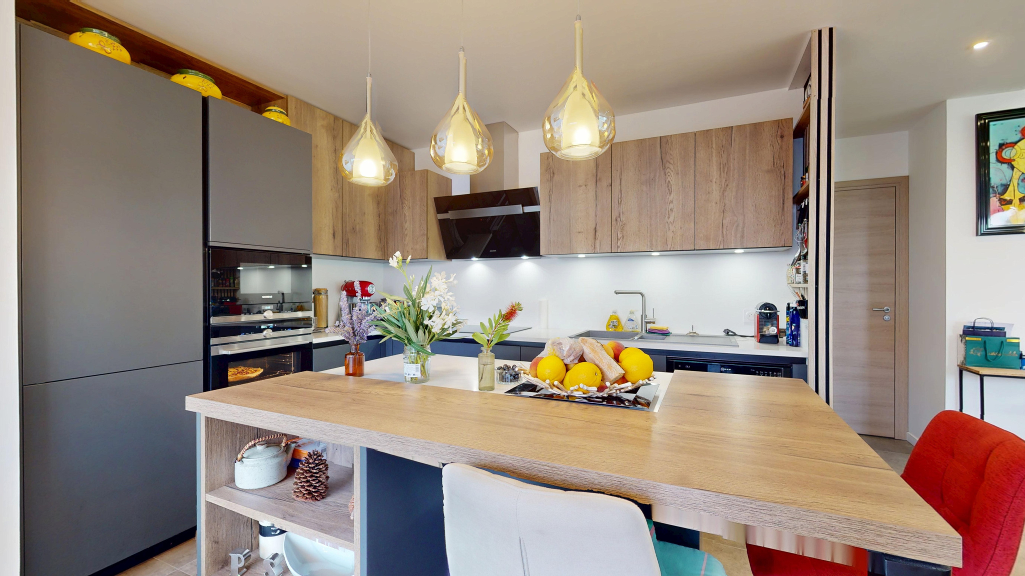 À l'étage, La cuisine indépendante et équipée vous permettra de préparer vos repas dans un espace fonctionnel ainsi que la salle a manger et sa terrasse au SUD de 8 m², vous trouverez deux chambres spacieuses avec placards et penderie, parfaites pour créer un nid douillet. Une deuxième salle d'eau avec WC est également présente pour votre confort. Les ouvertures en PVC à double vitrage assurent une isolation optimale et une tranquillité absolue.