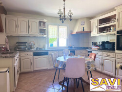 Elle offre de beaux volumes avec ses 174m² environ . Elle se compose d'une entrée avec placard s'ouvrant sur un salon/séjour de 43m² avec cheminée insert. Accès direct à la grande terrasse carrelée avec store bane. Ouvert sur l'espace de vie la cuisine est aménagée et équipée. De plain-pied vous profiterez également d'une chambre avec penderie, d'une salle d'eau avec douche à l'italienne et d'un WC indépendant avec lave mains.