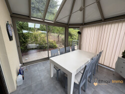 Nouveauté Ethiqu'immo ! Située à 5 mn de Bar-sur-Aube, axe Bar-sur-Aube/Brienne, à 5 mn de Nigloland et 15 mn de Brienne-le-Chateau et 10 mn de Soulaines, cette maison traditionnelle de 100 m2, va vous séduire. Construite sur un sous-sol, entièrement aménagé : deux garages avec portails automatiques, buanderie, chaufferie et débarras. Elle se compose au rdc, d'une vaste et lumineuse pièce à vivre : cuisine intégrée avec four, hotte, plaque de cuisson, frigo, un accès pergola, une table bar et un séjour, avec au centre un poële à granulés et à l'arrière une veranda/salle à manger, chauffée, d'une surface de 15 m2 avec rideaux occultants et en prolongement de la cuisine une terrasse panoramique/pergola, une salle d'eau, des toilettes séparés et une chambre de 12 m2 Au premier étage, se trouvent 3 chambres d'une surface de 9 à 11 m2, et une salle d'eau/wc. La maison repose sur un terrain clos et arboré de 1464 m2, entouré de murets et les espace de circulation sont recouverts de pavés autobloquants. Fosse septique. Fenêtre PVC double vitrage, volets roulants, veranda ouvrante avec radiateurs. Chauffage chaudière fioul et poèle à granulés. DPE F/GES E, éligible au programme de rénovation énergétique. De par sa situation géographique, cette maison vous immergera dans la nature environnante, dépaysement garanti ! Disponible de suite, visites au 0770998577