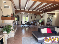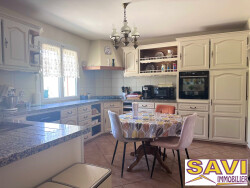 Elle offre de beaux volumes avec ses 174m² environ . Elle se compose d'une entrée avec placard s'ouvrant sur un salon/séjour de 43m² avec cheminée insert. Accès direct à la grande terrasse carrelée avec store bane. Ouvert sur l'espace de vie la cuisine est aménagée et équipée. De plain-pied vous profiterez également d'une chambre avec penderie, d'une salle d'eau avec douche à l'italienne et d'un WC indépendant avec lave mains.