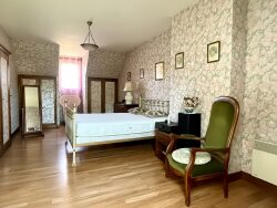 A l'étage, vous y trouverez deux chambres dont une très grande (possibilité d'en créer une 3ème) et une salle de bains avec wc.